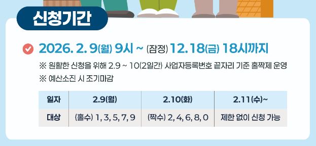 2026년 신청은 2월 9일 09시부터 시작되었으며, 예산 소진 시까지 상시 접수가 가능합니다.