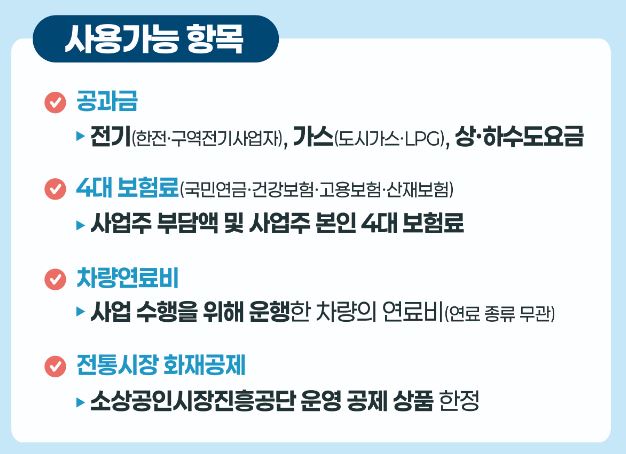 이를 통해 정책 목적에 맞는 비용 집행을 유도하고, 실제 경영 안정에 도움이 되는 항목에 집중 지원하는 구조입니다.