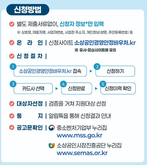 이처럼 소상공인경영안정바우처는 매년 변하는 경제 환경 속에서 고정비 부담을 덜어주는 세금 기반의 실질적 안전망이라고 할 수 있습니다.